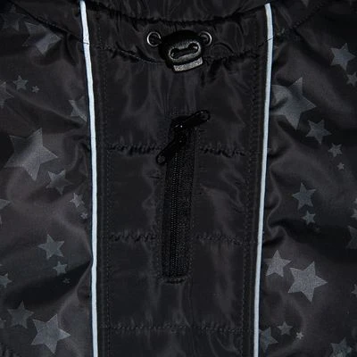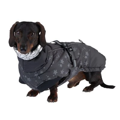 Abrigo para perros de material hidrófugo, con trabillas en las patas y cuello alto, protege del mal tiempo, reflectante, con estampado de estrellas, color: negro/gris