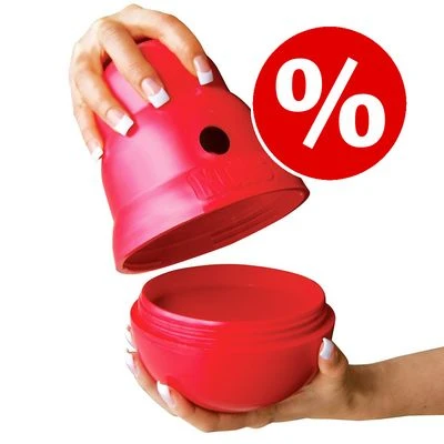 El KONG se abre fácilmente con cierre de rosca. De esta manera podrás llenarlo con la comida que tu perro necesita cada día. Podrás comprobar lo activo que, de repente, se volverá tu perro.