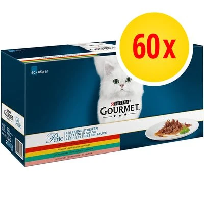 Las Finas Láminas de Gourmet Perle son unas exquisitas tiras de carne o pescado acompañadas de una salsa irresistible. Los gatos más exigentes apreciarán su textura tierna y se relamerán después de cada comida. Puesto que a los gatos les encanta la comida variada, este multipack se compone de 4 sabores deliciosos: pollo, salmón, buey y conejo.