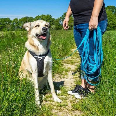 Correa de rastreo para perros de PVC muy resistente y con superficie lisa. Paseos controlados con libertad de movimiento. Color: azul intenso.
