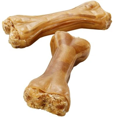 Snacks en forma de hueso de piel de caballo. Naturales e hipoalergénicos. Ideales para fortalecer los músculos de la mandíbula y estimular la masticación. Bajos en grasa.