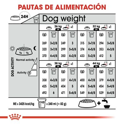 El pienso Royal Canin está especialmente adaptado para satisfacer las necesidades dietéticas de los perros castrados de razas grandes (26 – 44 kg). Es apto para perros a partir de los 15 meses de edad.